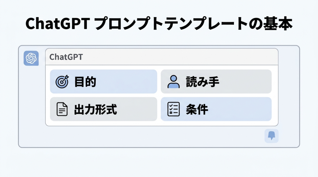 ChatGPTのプロンプト作成で大切なのは、難しい命令文を書くことではありません。何を、誰向けに、どんな形で出したいかを整理することです。