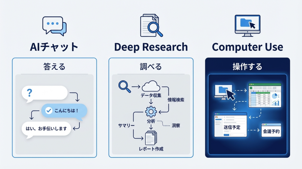 普通のAIチャット・Deep Research・Computer Useの違い